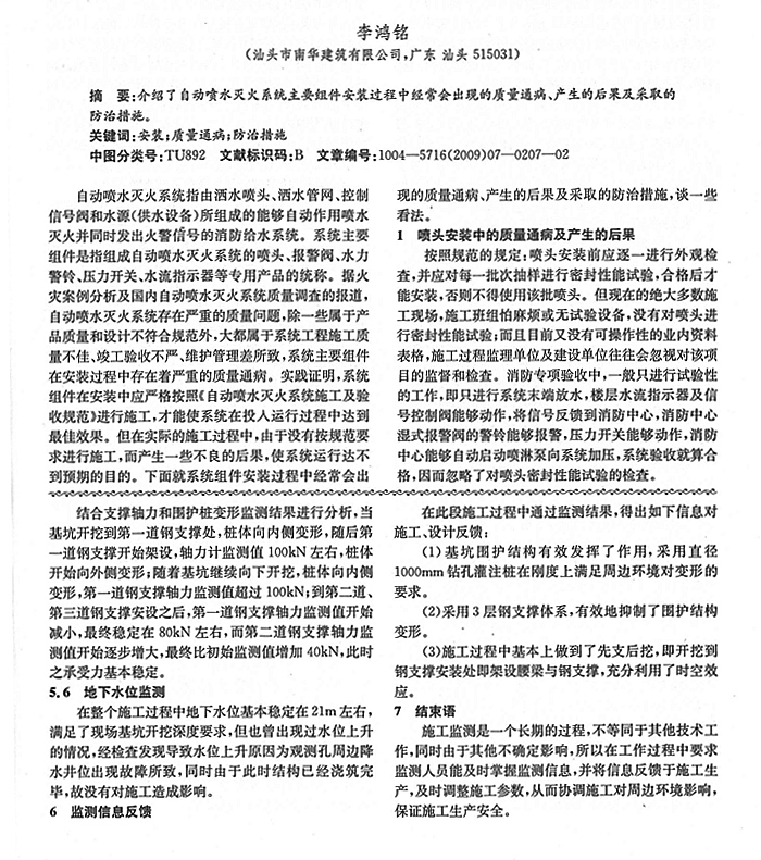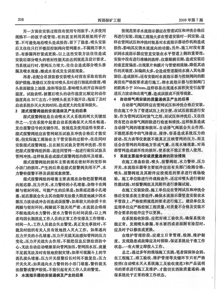 自動(dòng)噴水滅火系統(tǒng)主要組件安裝的質(zhì)量通病及防治措施(李鴻銘)