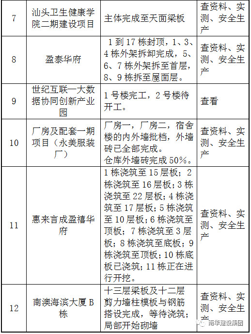 根據(jù)現(xiàn)階段工程項目形象進度,本次季度檢查對各階段項目工程檢查如下: