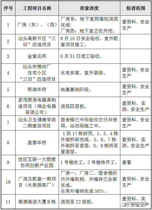根據(jù)現(xiàn)階段工程項目形象進度,本次季度檢查對各階段項目工程檢查如下:
