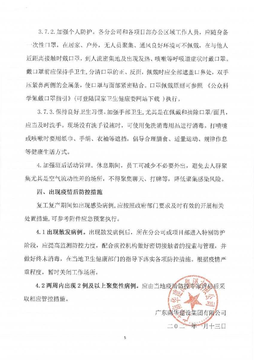 南華建設集團《復工復產新冠肺炎防控工作指引》《新冠肺炎疫情應急處置方案》