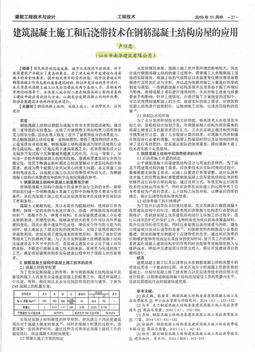 論建筑混凝土施工和后澆帶技術在鋼筋混凝土結構房屋的應用(盧仕忠)