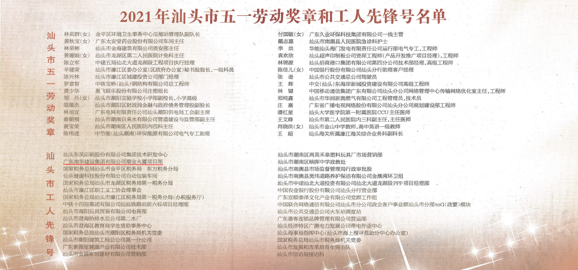 “五一”國際勞動(dòng)節(jié)來臨之際,4月30日下午,市委市政府在市委會(huì)議中心大會(huì)堂召開汕頭市慶祝“五一”國際勞動(dòng)節(jié)大會(huì)。南華建設(shè)集團(tuán)“潮金大廈項(xiàng)目部”榮獲汕頭市 “工人先鋒號(hào)”稱號(hào)!