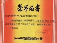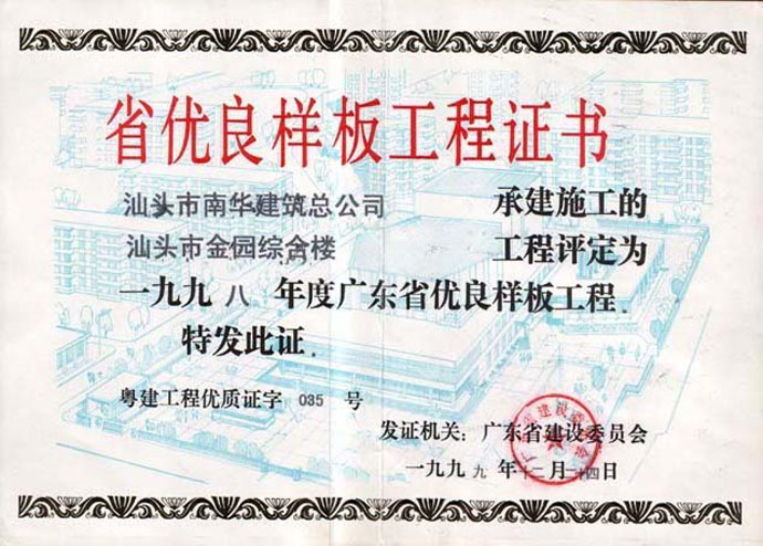 汕頭市金園綜合樓 省優(yōu)良證書