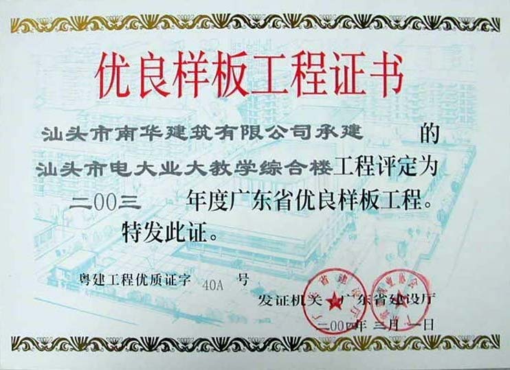 工程樣板證書