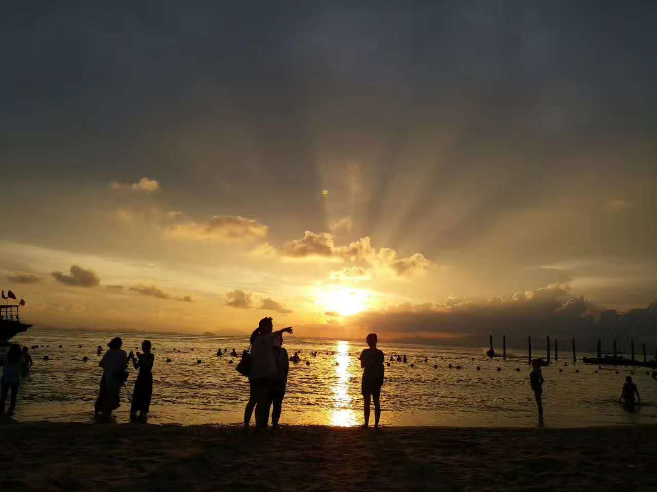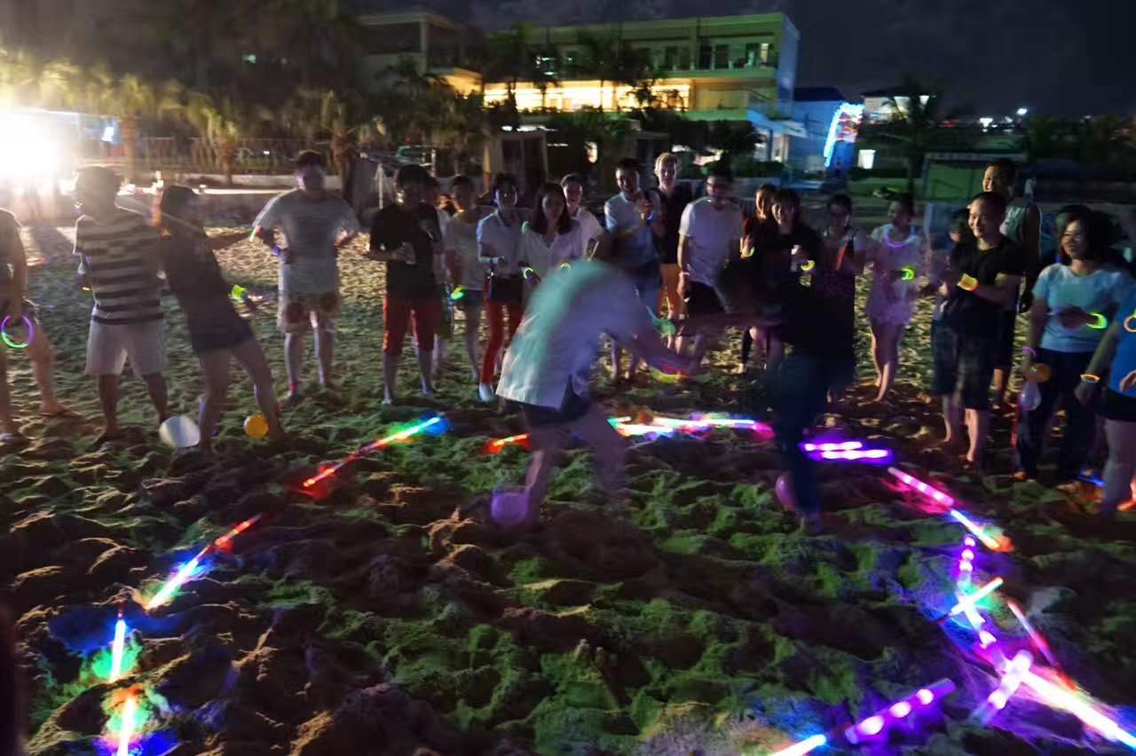 金銀灘沙灘,欣賞海上落日的美景,在沙灘上享用美味的燒烤晚餐,并舉行煙花篝火晚會,大家圍著篝火歡快舞蹈。晚會中進行了拔河比賽,大家分組對陣,摩拳擦掌,熱情高昂,齊心協(xié)力為自己的團隊爭光,吶喊助威的聲音此起彼伏,引得旁人駐足觀看,齊聲為我們的團結(jié)精神喝彩。此外還有兩人三足、踩氣球等游戲項目,大家踴躍參與,玩得不亦樂乎。