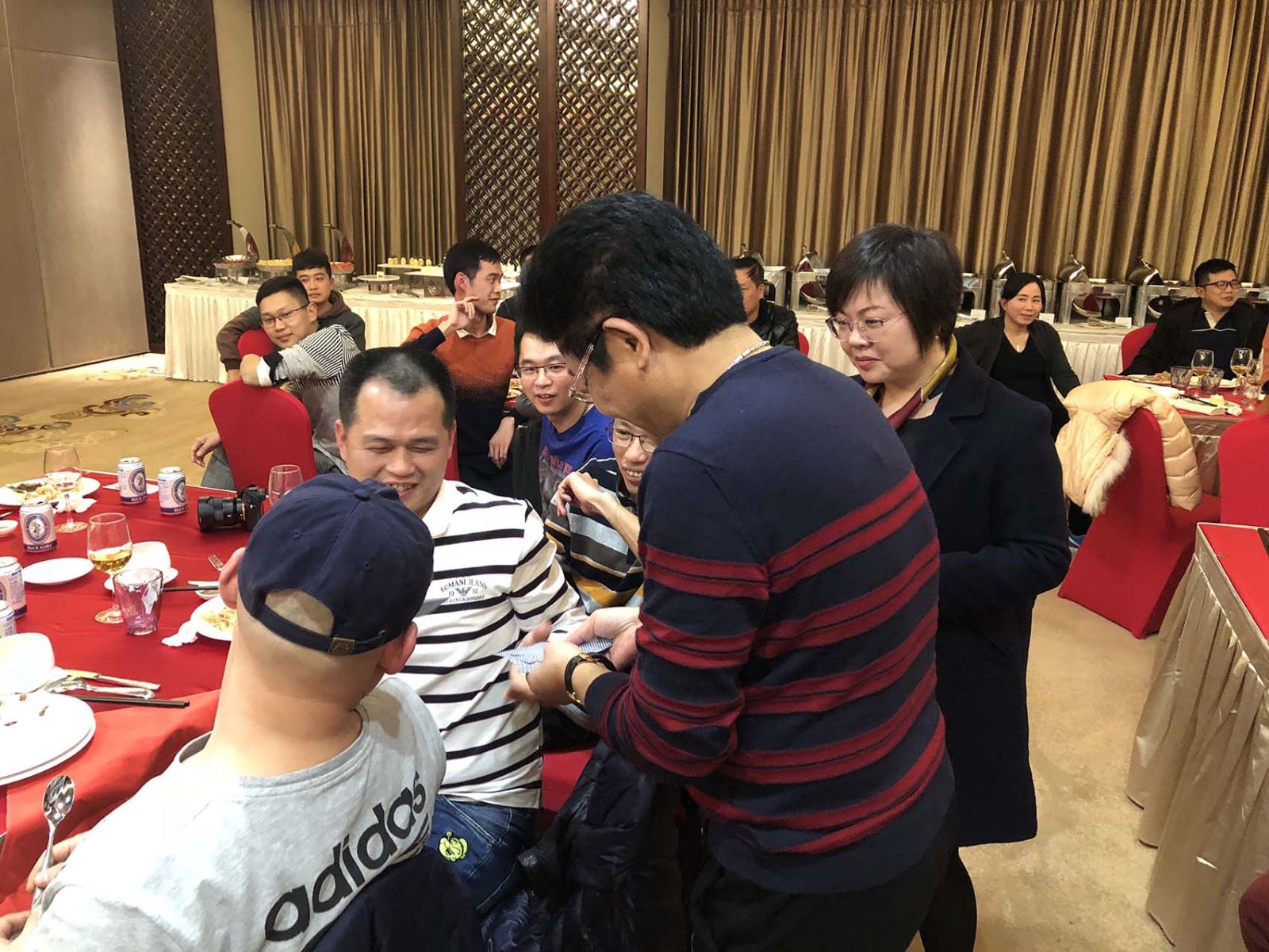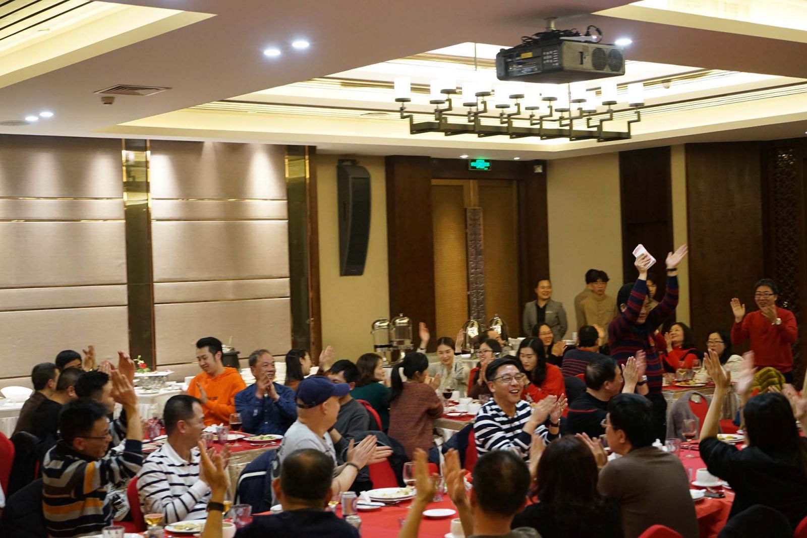 在年會用餐的過程,發(fā)紅包的環(huán)節(jié)掀起了年會的高潮,每位員工都收到了來自林錦平董事長的一份心意,并為當天下午的拓展活動獲獎的小組進行頒獎。年會最后還有撲克牌抽獎,既興奮又忐忑,全程歡呼與掌聲齊鳴。