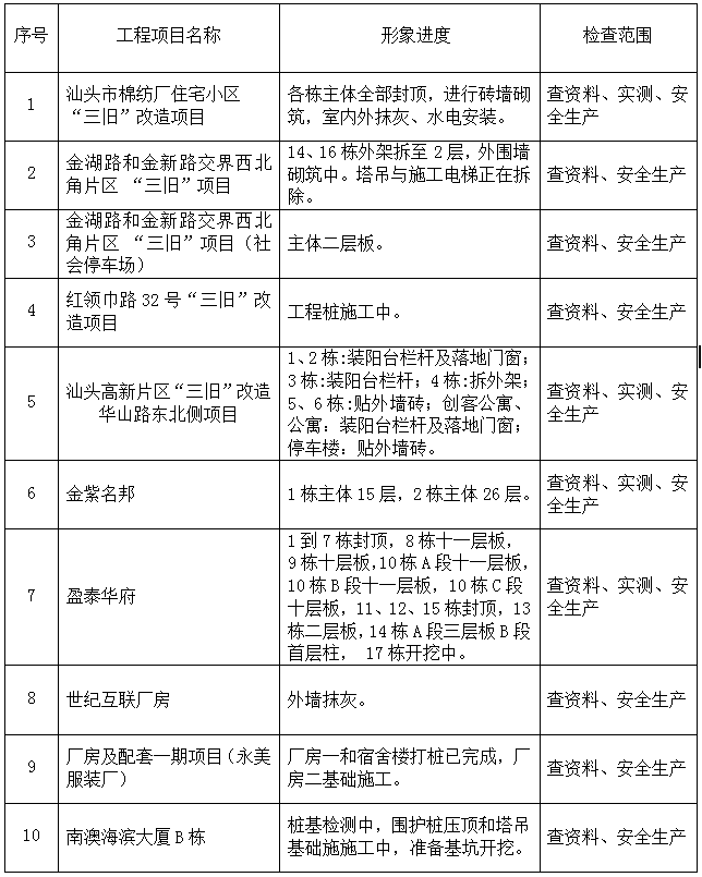 下面10個(gè)項(xiàng)目工程接受本次檢查。