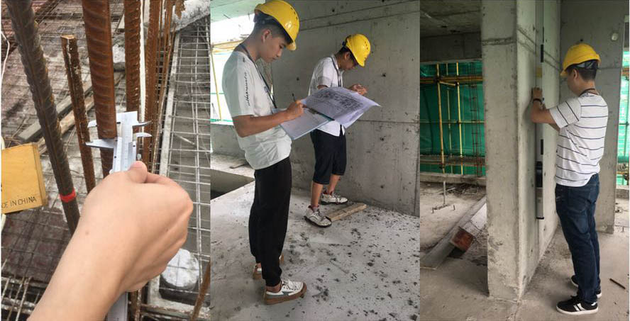 根據(jù)現(xiàn)階段工程項(xiàng)目現(xiàn)象進(jìn)度,本次季度檢查對(duì)“盈泰華府”、“ 汕頭市金湖路和金新路交界西北角片區(qū)膠廊路12號(hào)、黨校路10號(hào)‘三舊’項(xiàng)目社會(huì)停車(chē)樓”、 世紀(jì)互聯(lián)廠房、金紫名邦項(xiàng)目進(jìn)行了主體結(jié)構(gòu)混凝土回彈法測(cè)試、現(xiàn)澆混凝土結(jié)構(gòu)觀感質(zhì)量及尺寸偏差實(shí)測(cè)、磚砌體分項(xiàng)工程平整度、垂直度實(shí)測(cè)、以及鋼筋直徑實(shí)測(cè)、鋼筋保護(hù)層厚度實(shí)測(cè)?;炷粱貜椃y(cè)試每個(gè)項(xiàng)目各測(cè)試10個(gè)構(gòu)件,經(jīng)計(jì)算后雖均能滿(mǎn)足設(shè)計(jì)要求。磚砌體質(zhì)量及尺寸偏差實(shí)測(cè)每個(gè)項(xiàng)目各實(shí)測(cè)10個(gè)部位,合格率為80%及以上,基本能滿(mǎn)足規(guī)范要求。抽檢鋼筋保護(hù)層厚度每個(gè)項(xiàng)目實(shí)測(cè)10個(gè)部位,合格率90%及以上,滿(mǎn)足規(guī)范要求。鋼筋直徑實(shí)測(cè)是在鋼筋見(jiàn)證送檢合格后在樓板鋼筋安裝中進(jìn)行隨機(jī)抽查,每個(gè)項(xiàng)目抽查10點(diǎn),合格率為100%,滿(mǎn)足規(guī)范要求。這也是公司要求項(xiàng)目部在項(xiàng)目施工前選擇較大、口碑較好的材料供應(yīng)商,從材料源頭進(jìn)行質(zhì)量控制的一個(gè)良好反饋,公司也將推進(jìn)公司材料供應(yīng)商名錄。