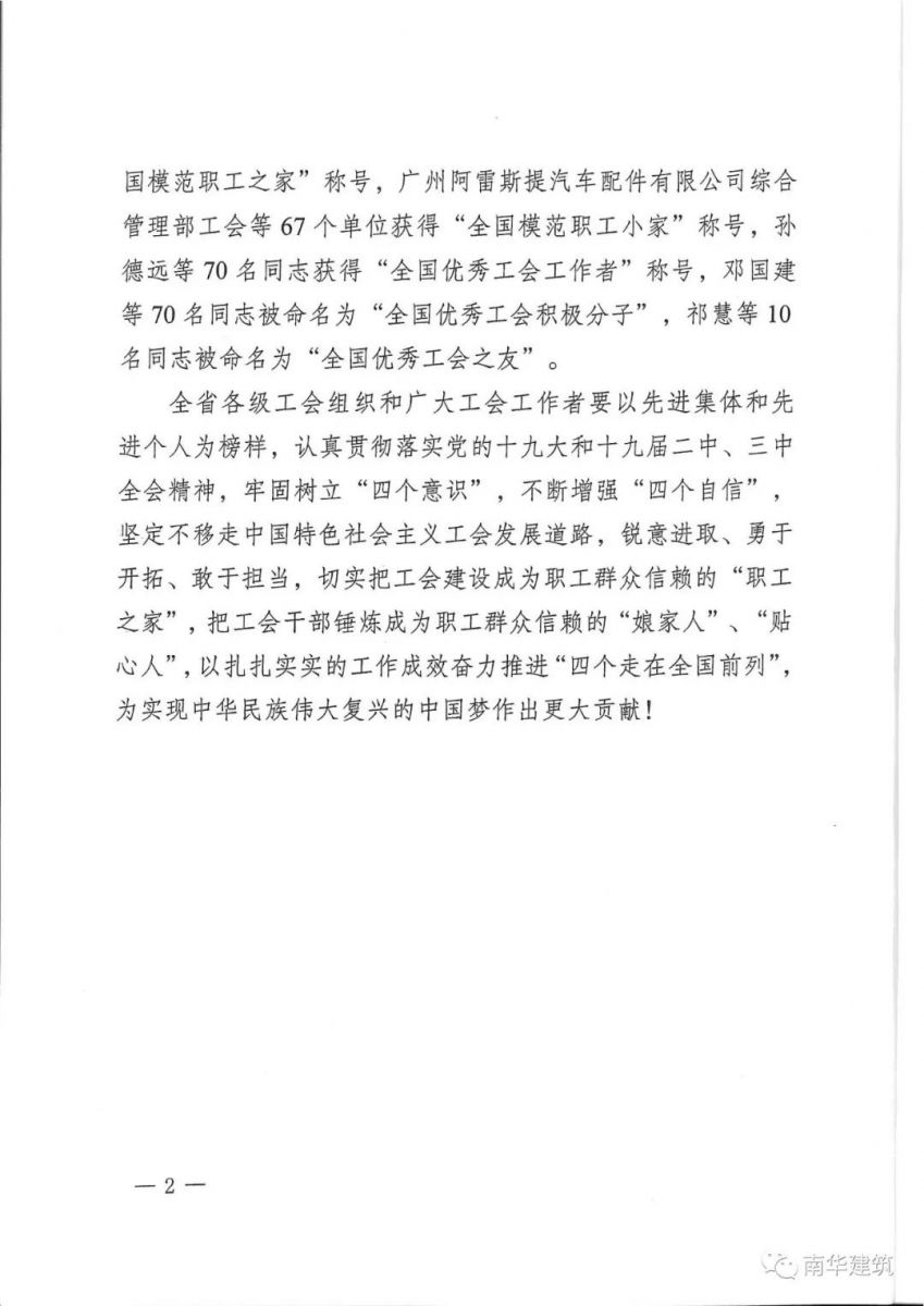 喜訊!汕頭市南華建筑有限公司水電處榮獲“全國模范職工小家”稱號!