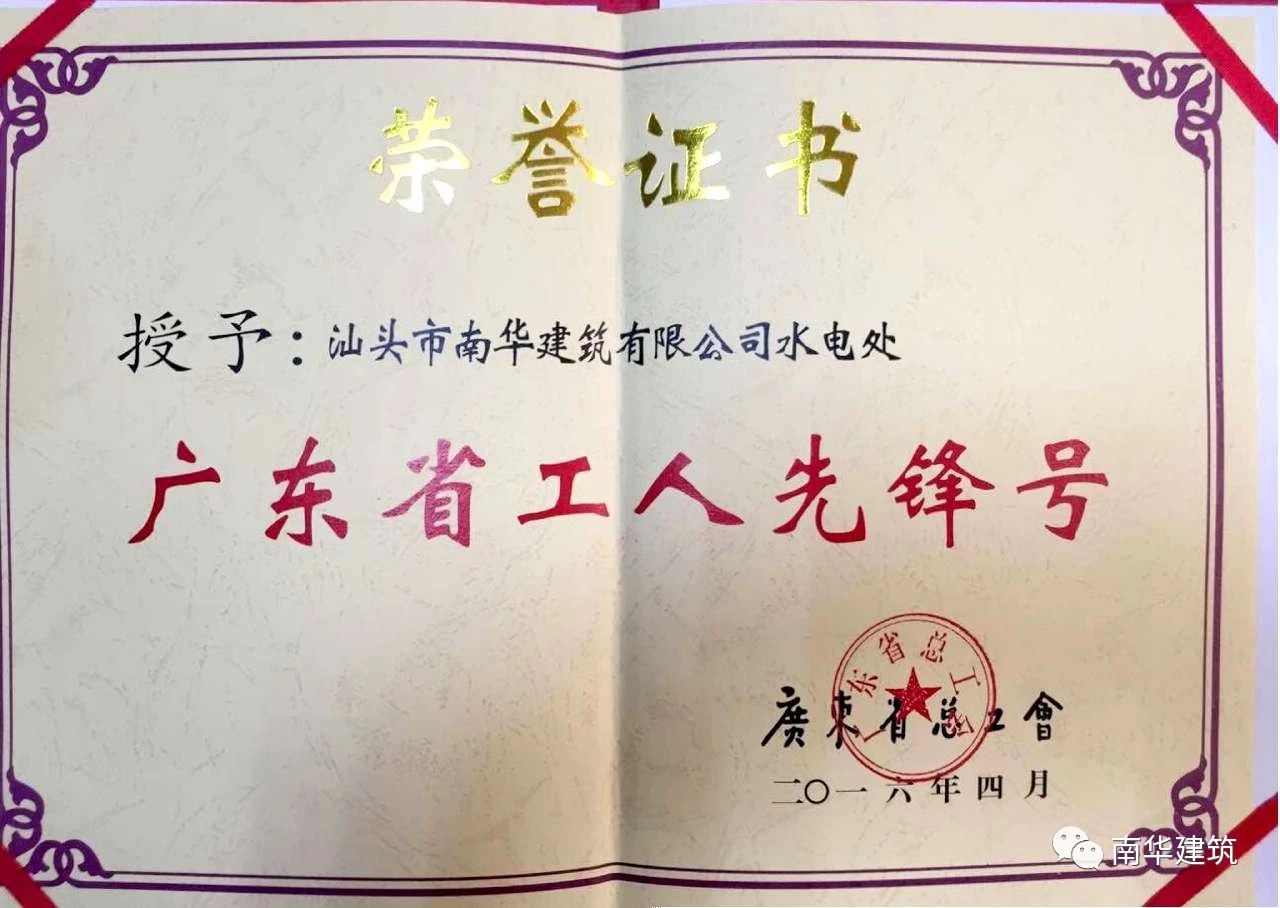 公司水電處是一支年富力強(qiáng)、團(tuán)結(jié)拼搏、開拓進(jìn)取、敢打硬仗的團(tuán)隊(duì)。是公司的先進(jìn)單位,一直秉承“科學(xué)管理、創(chuàng)時(shí)代精品;誠信服務(wù)、讓客戶滿意”的質(zhì)量方針與“以質(zhì)取勝、信守合同”的企業(yè)精神,以精細(xì)化管理規(guī)范自己,以標(biāo)準(zhǔn)化建設(shè)要求自己,團(tuán)結(jié)奮進(jìn),銳意改革,狠抓質(zhì)量與優(yōu)質(zhì)服務(wù),高效完成各項(xiàng)生產(chǎn)工作任務(wù)。2016年,被廣東省總工會授予“廣東省工人先鋒號”光榮稱號。
