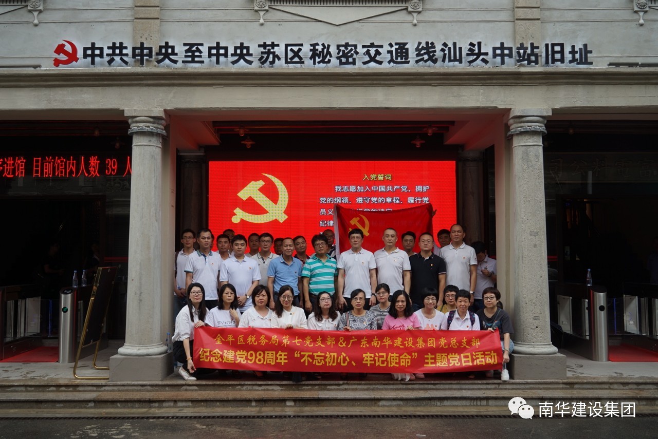6月28日,廣東南華建設(shè)集團有限公司與金平區(qū)稅務(wù)局第七黨支部組織黨員到位于小公園街區(qū)的“中共中央至中央蘇區(qū)秘密交通線汕頭中站”舊址進行參觀。