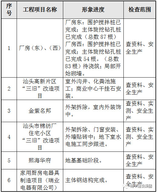 根據(jù)現(xiàn)階段工程項目形象進度,本次季度檢查對各階段項目工程檢查如下: