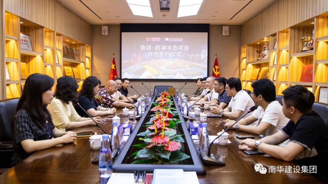 2020年8月5日,南華建設(shè)集團(tuán)與廣西遠(yuǎn)道集團(tuán)在公司會議廳舉辦了“香頌·蔚瀾半島”項目戰(zhàn)略合作簽約儀式,遠(yuǎn)道集團(tuán)劉建發(fā)董事長,南華建設(shè)集團(tuán)林錦平董事長、李鴻銘總經(jīng)理、梁小菲女士等人出席簽約儀式。