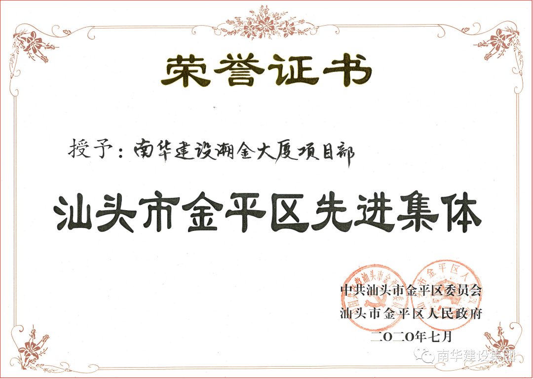 潮金大廈項(xiàng)目的建設(shè)結(jié)合國家一帶一路發(fā)展政策與汕頭加快打造省域副中心城市的契機(jī),依托具有440年悠久歷史的國家非物質(zhì)文化遺產(chǎn)潮劇,致力創(chuàng)建潮劇文化教育傳播基地,打造中華傳統(tǒng)文化的精品名片,成為維系全球華僑華人的鄉(xiāng)情紐帶,凝聚僑心,匯聚僑力,共同構(gòu)筑華僑精神家園。項(xiàng)目建設(shè)潮汕歷史文化和潮劇藝術(shù)展覽館(博覽館)、潮劇非物質(zhì)文化遺產(chǎn)保護(hù)傳承基地、潮劇文化藝術(shù)研究交流中心、潮劇專業(yè)劇場(chǎng)、潮劇潮樂群眾藝術(shù)活動(dòng)中心、潮劇藝術(shù)展示、旅游接待基地等多功能的綜合性藝術(shù)中心以及配套設(shè)施等;建筑面積約43825平方米(含地下室)。我集團(tuán)公司做為總承包方,在項(xiàng)目開始前進(jìn)行合理安排工期,精心組織施工,在克服諸多不利因素條件下,確保工程質(zhì)量的基礎(chǔ)上狠抓進(jìn)度,確保項(xiàng)目建設(shè)順利推進(jìn),遇到問題大家互相探討、互相學(xué)習(xí),積極總結(jié)經(jīng)驗(yàn),不斷地提升自我技能,在集團(tuán)公司以及潮金大廈項(xiàng)目部全體成員的共同努力下,中共汕頭市金平區(qū)委、區(qū)政府對(duì)我們潮金大廈項(xiàng)目施工安全質(zhì)量、文明施工給予一致好評(píng)并授予“先進(jìn)集體”榮譽(yù)證書。
