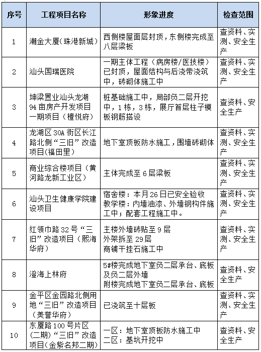 建設(shè)工程質(zhì)量關(guān)系到公共利益和公眾安全,對人民群眾生活質(zhì)量和生命財產(chǎn)安全有著直接的影響?,F(xiàn)階段工程質(zhì)量的重要性越來越突出,新規(guī)范、新工藝、新要求對質(zhì)量的要求越來越高。南華集團積極跟進并樹立“建設(shè)優(yōu)質(zhì)工程,創(chuàng)造優(yōu)良信譽”的企業(yè)形象。并嚴格按照建設(shè)部的有關(guān)工程質(zhì)量治理的文件精神、以及集團公司的質(zhì)量方針、安全生產(chǎn)工作方針等宗旨,加強貫徹落實國家工程質(zhì)量安全法律法規(guī)和規(guī)范性文件的要求。集團公司通過對項目制定相應(yīng)的檢查方案,并及時轉(zhuǎn)發(fā)文件和宣傳文件精神,加大企業(yè)對地基基礎(chǔ)和主體結(jié)構(gòu)實體、裝飾裝修等過程中管理的力度。并通過公司級質(zhì)量安全巡查監(jiān)管、項目部自我提升建設(shè)工程管理規(guī)范化、項目部管理人員管理的系統(tǒng)化,使公司質(zhì)量管理水平有著整體提升。根據(jù)現(xiàn)階段工程項目形象進度,本次季度檢查對各階段項目工程檢查如下: