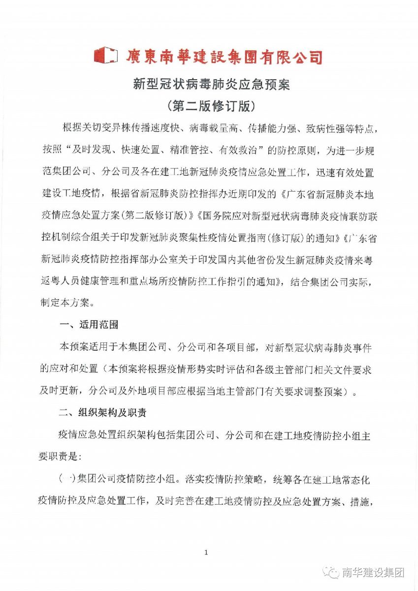 集團公司新型冠狀病毒肺炎應急預案 (第二版修訂版)