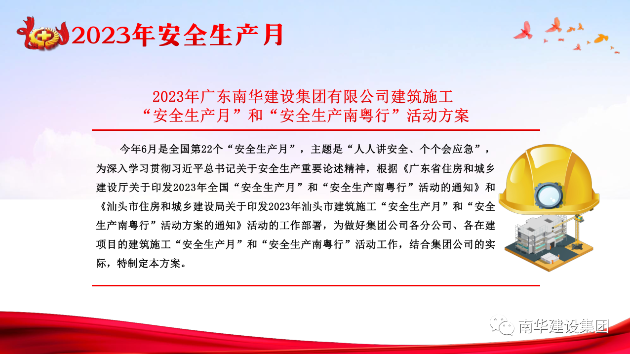 2023年廣東南華建設(shè)集團(tuán)有限公司建筑施工“安全生產(chǎn)月”和“安全生產(chǎn)南粵行”活動(dòng)方案