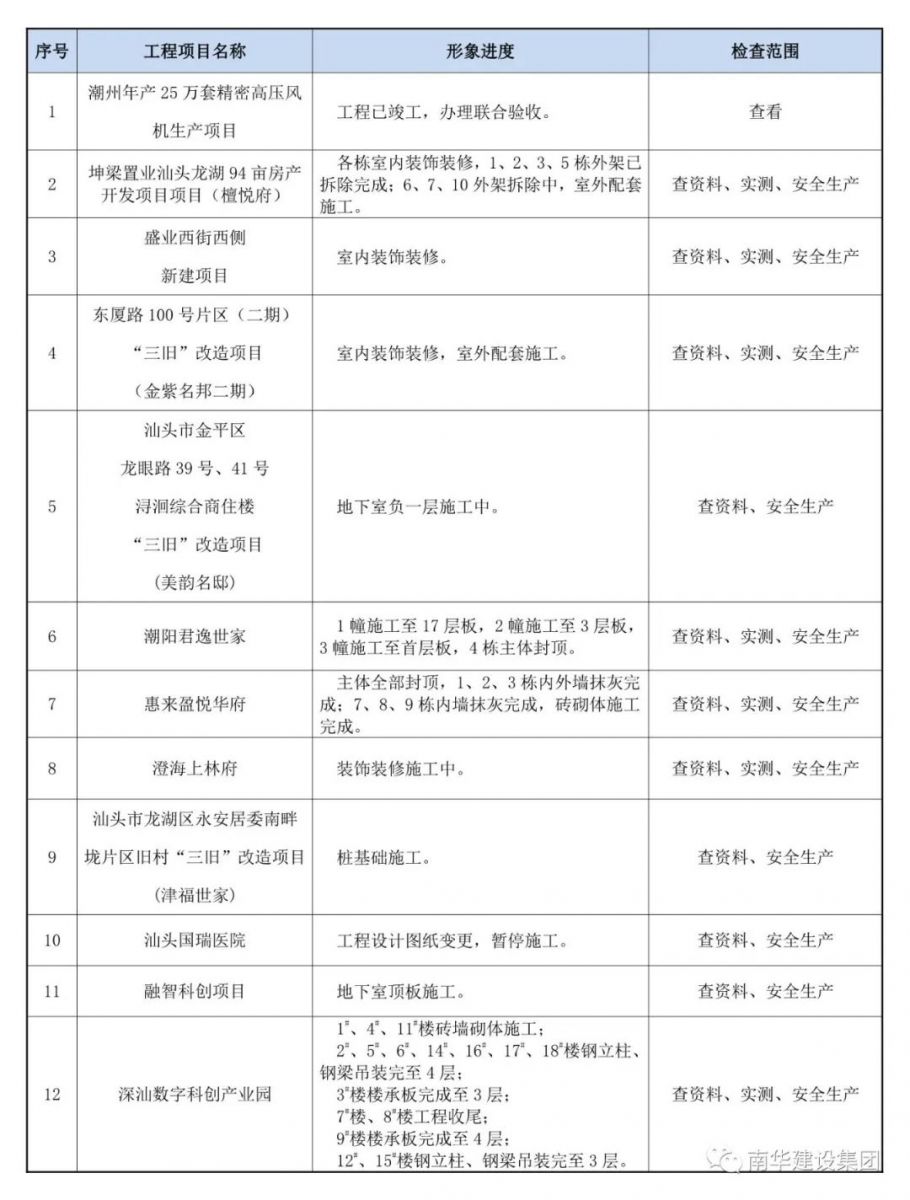 以下12個(gè)項(xiàng)目工程接受本次檢查。