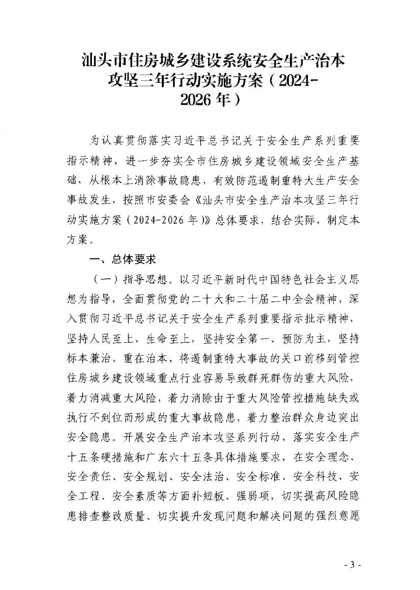 汕頭市住房城鄉(xiāng)建設(shè)系統(tǒng)安全生產(chǎn)治本攻堅(jiān)三年行動實(shí)施方案(2024-2026年)