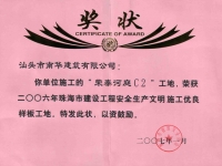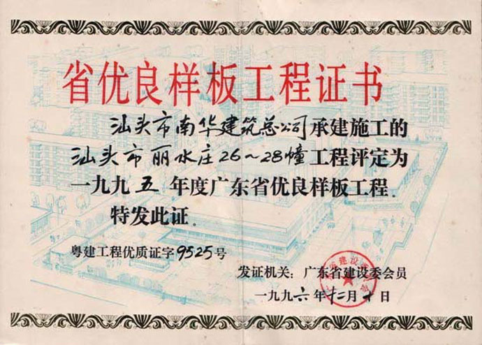 中國乒乓球汕頭基地雙優(yōu)工地證書