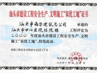汕頭中心醫(yī)院市雙優(yōu)工地證書