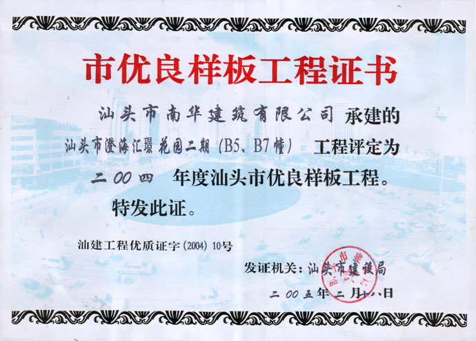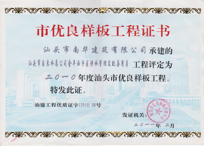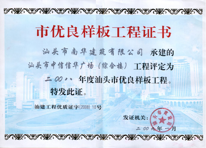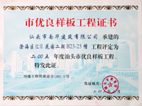 汕頭深水港市雙優(yōu)工地證書